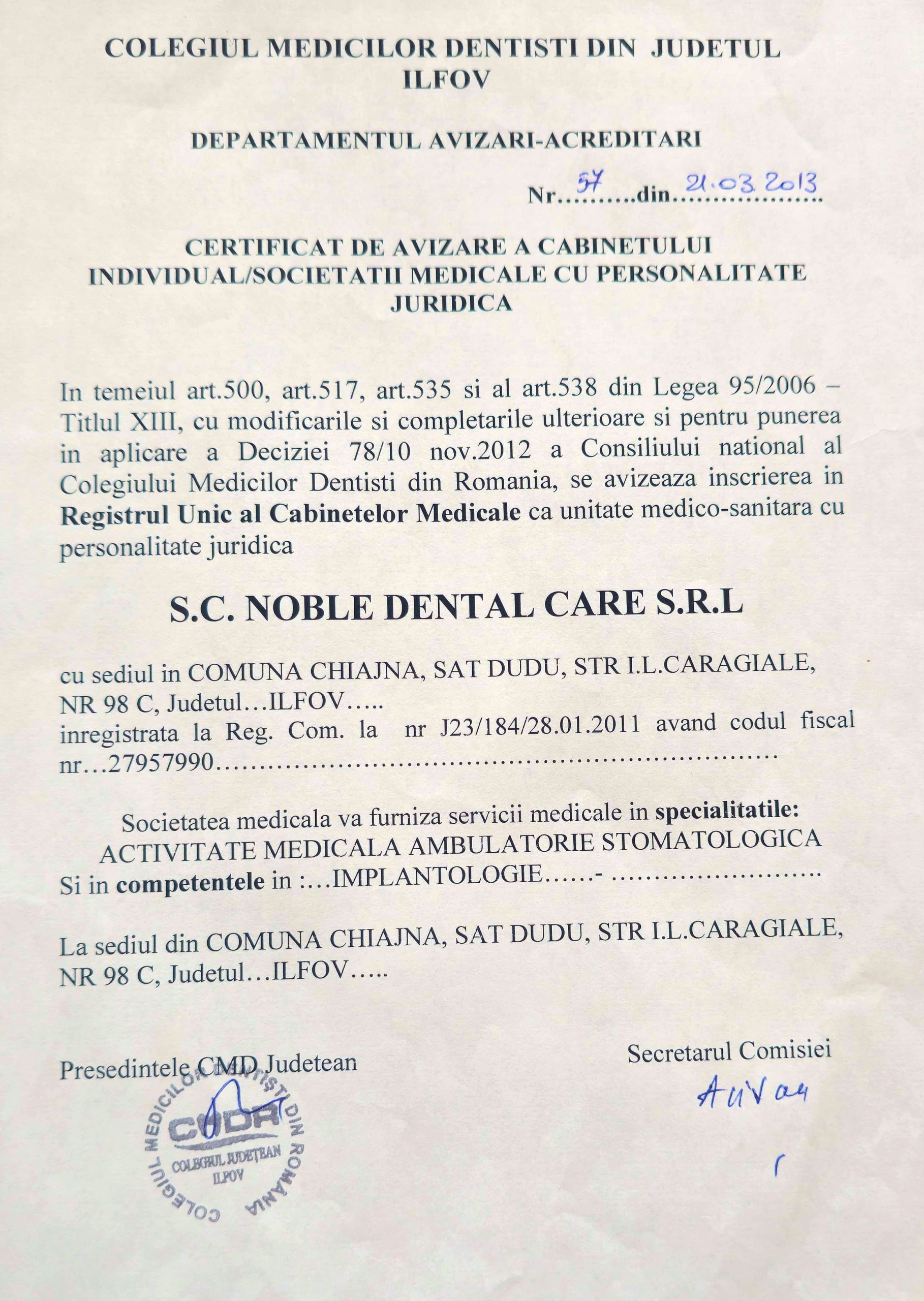 Prin prezenta, vă informăm că, în calitate de consumator, aveți opțiunea de a contacta o entitate SAL locală pentru soluționarea unui litigiu pe care nu ați reușit să-l soluționați direct cu S.C. NOBLE DENTAL CARE S.R.L
