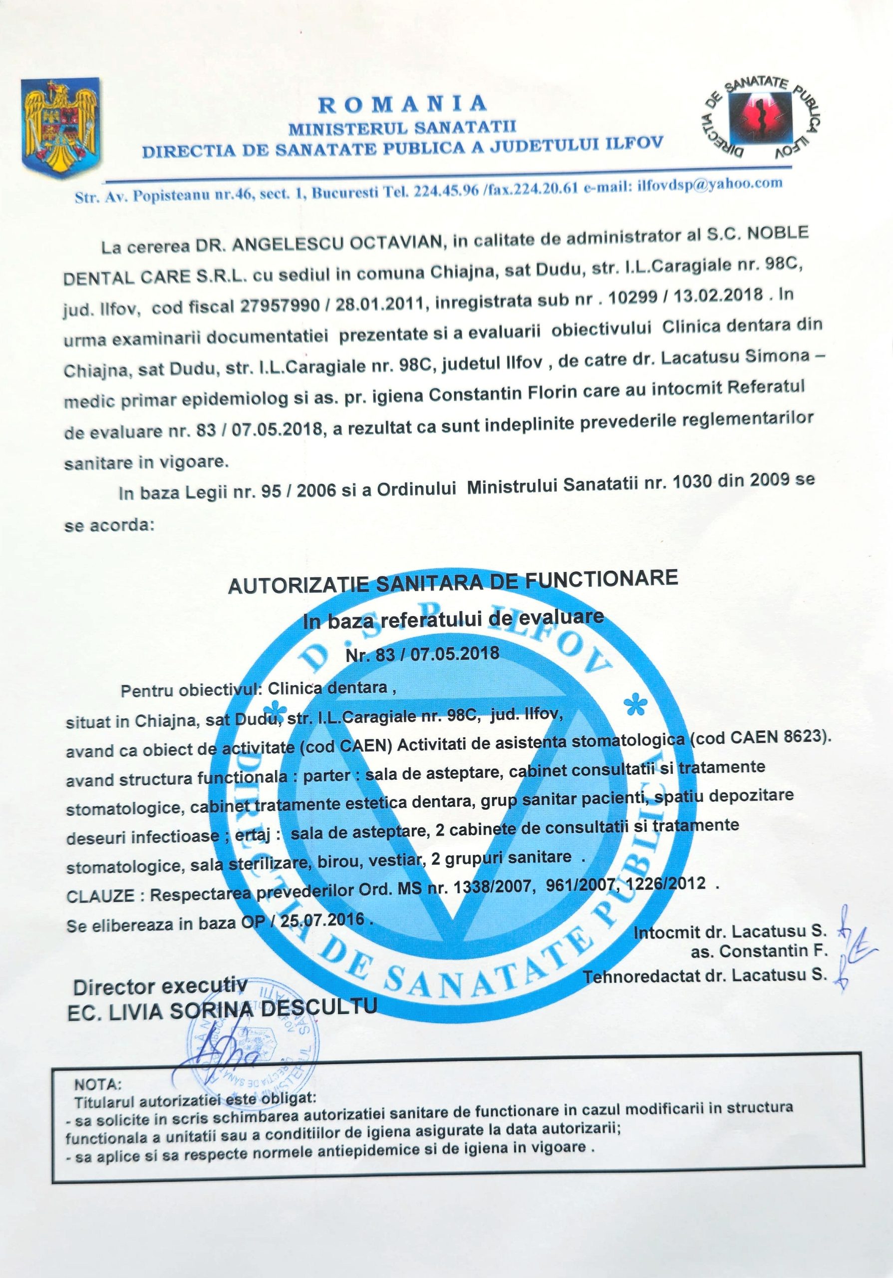Prin “Termeni și Condiții”, administratorul transmite către utilizator faptul că: Prin “site” se înțelege în continuare site-ul de internet www.dentangelo.ro, prin “administratorul site-ului” înțelegem SC NOBLE DENTAL CARE SRL cu sediul în Sat Dudu Com. Chiajna, Str. I.L.Caragiale, Nr.98c, Dudu, Judet: Ilfov, iar prin “utilizator” se înțelege în continuare orice persoană care vizitează și dorește să utilizeze site-ul.