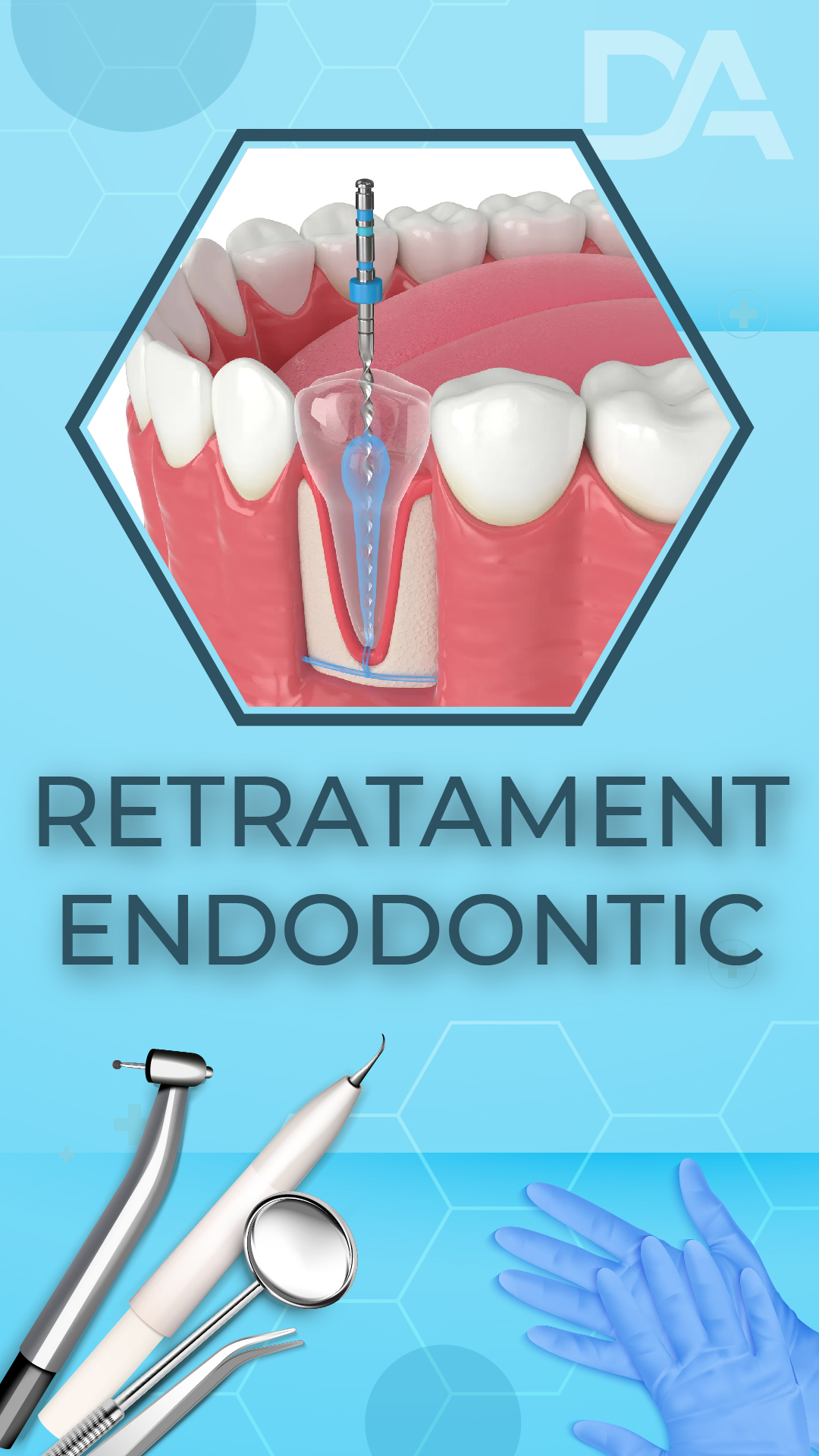 Retratament endodontic – este o procedura complexa care se aplica atunci cand un tratament de canal initial nu a avut succes sau cand apare o reinfectie a canalelor radiculare. Aceasta interventie presupune indepartarea materialului de obturatie vechi, curatarea temeinica si dezinfectarea canalelor, urmata de o noua obturare corecta pentru a salva dintele.