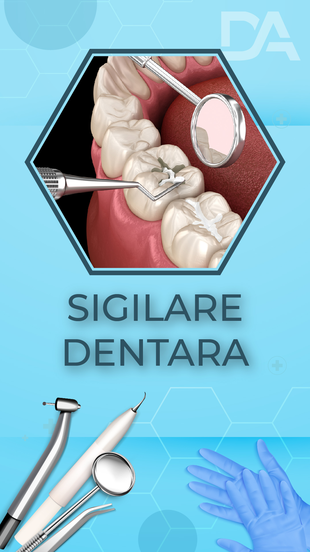 Sigilare dentara – este o procedura stomatologica preventiva prin care suprafata dintilor (in special a molarilor si premolarilor) este acoperita cu un strat subtire de material compozit, care sigileaza santurile si fosetele unde se pot acumula bacterii si resturi alimentare.